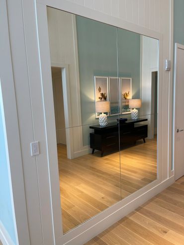 Our Art Mirror Division produces beautiful artistic hanging mirrors that can be installed just like any other picture or framed mirror. The mirror silvering is stripped away and then back painted with meticulous detail by our onsite artist using old world techniques.